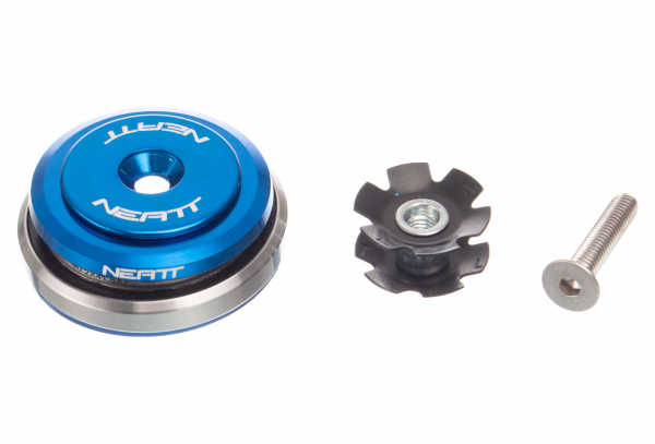 Auriculares cónicos con conector de cabeza cónica compatible con Neatt diámetro interior superior 42 mm e inferior 52,2 mm. Detalles: SHIS superior: IS42 / 28.6 SHIS inferior: IS52 / 40 Roll up / down 45/45 Rodamiento de acero inoxidable Copa de aluminio AL6061 Pivote cónico compatible 1 » 1/8 – 1.5 » Peso: 85 g Contiene: x1 rodamiento alto 41.8 x 7 x 28.6 mm (45×45) x1 rodamiento inferior 52 x 7 x 40 mm (45×45) x1 cono de horquilla lienzo x1 tornillo x1