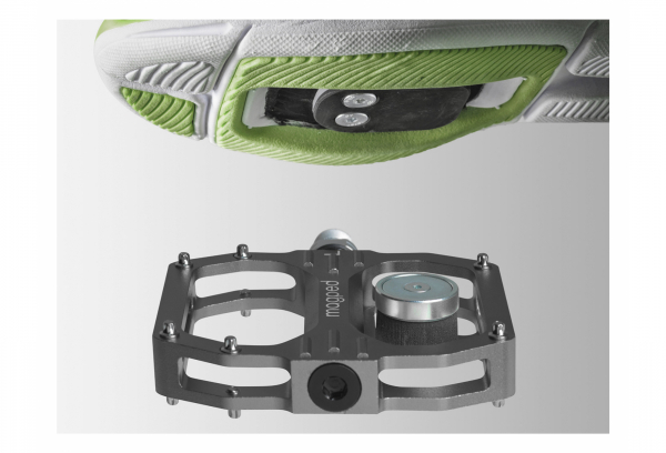 Los pedales Magped son una auténtica innovación sea cual sea el uso, en esta versión Sport 2 permite una excelente estabilidad con una plataforma adaptada a XC / Gravel / Trail / City. El mecanismo magnético patentado le permite soltar el pie del pedal de forma rápida y sencilla. En comparación con los pedales automáticos estándar, el riesgo de accidentes y lesiones se reducirá al mínimo y su mente estará libre para una experiencia de ciclismo sin complicaciones. El + producto: El Magped Pedal es un pedal plano moderno de alta calidad hecho de aluminio ligero cortado por CNC con un eje de CrMo o Titanio. Todos los pedales Magped son extremadamente competitivos en comparación con otros pedales de gama alta, a pesar del sistema de imán agregado. El pedal Magped asegura un movimiento circular continuo usando sus músculos extensores (70%) así como sus flexores (30%) para un rendimiento máximo de conducción. Sentirás la diferencia especialmente en viajes largos. El pedal tiene en cuenta varios grados de torsión en el pie y, por lo tanto, reduce la tensión en los tobillos cuando sale. Además, la posición del pie se puede cambiar hacia adelante o hacia atrás sin perder fuerza de tracción para una posición ideal en su ascenso y descenso. El pedal está equipado con 3 cojinetes de tipo industrial sellados de alta calidad. Los ejes se pueden cambiar si es necesario. El imán de neodimio de alto rendimiento se puede ajustar mediante una unidad de amortiguación de polímero integrada. Detalles : Usos: XC / Gravel / Trail CNC mecanizado a partir de un bloque de aluminio Eje de acero Dimensiones: largo: 104 mm / ancho: 92 mm / alto / 18 mm Imán de neodimio de alto rendimiento Peso por par (sin pines): DEPORTE 100: 420g DEPORTE 150: 440g DEPORTE 200: 458g Entregado con: Imanes Placas de metal para zapatos SPD Tornillos magnéticos en 2 longitudes llave Allen Recomendación de marca: 100N para ciclistas 75 kg y ENDURO La marca recomienda zapatos SPD con suela fina a media.