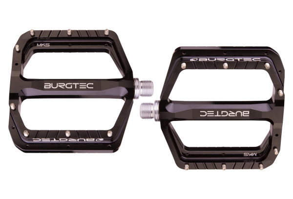 El MK5 Burgtec no solo le dio al prestigioso MK4 un lavado de cara. La plataforma ha sido completamente revisada, ampliada y aligerada. Los pasadores son más delgados y más largos para un agarre aún mayor. Los ejes siempre están montados sobre anillos de teflón para asegurar un mejor sellado y longevidad de los pedales. Detalles: Cuerpo de pedal de aluminio 7075 mecanizado. Eje de acero montado sobre 2 anillos de teflón. Espesor: 15 mm Concavidad: 2 mm Peso: 379g