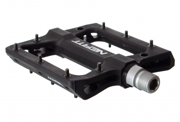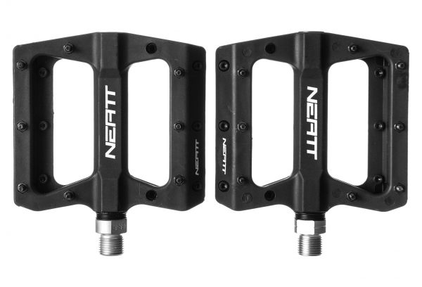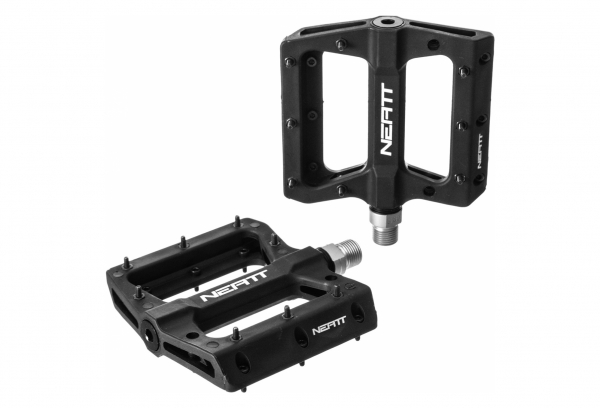 El par de pedales planos Neatt Nylon ofrece un agarre ideal gracias a sus 8 pines metálicos por lado a la vez que aporta la ligereza que buscas.