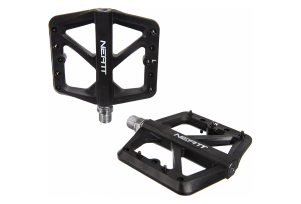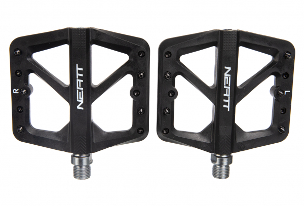 El par de pedales planos Neatt Nylon ofrece un agarre ideal gracias a sus 5 pines metálicos por lado a la vez que aporta la ligereza que buscas. Detalles: Cuerpo: Nylon + Fibras Eje: Cr-Mo Rodamientos sellados 5 pines por lado, reemplazables Dimensiones (largo x ancho x alto): 102 x 107 x 25 mm Eje: 9/16 '' Peso: 350g Referencia: NEA00590