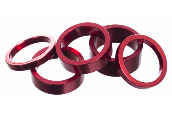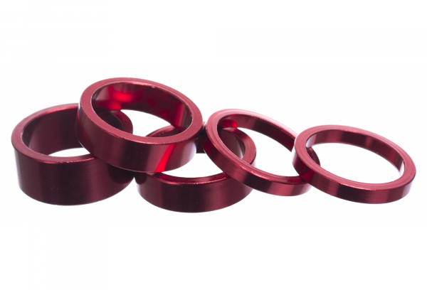 Kit of aluminum steering spacers, consisting of 5 pieces of 5,10 and 20 mm thick.