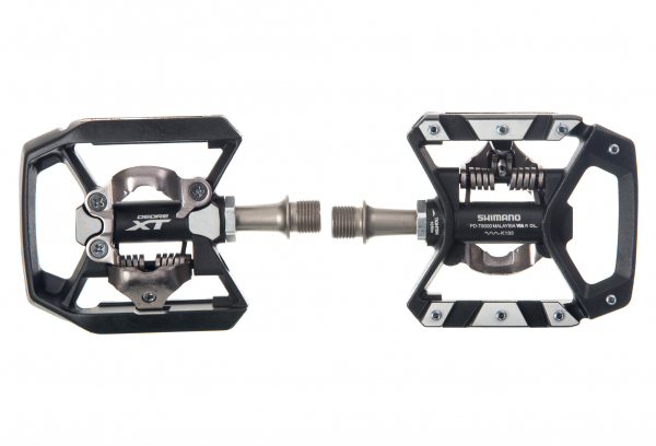 Los nuevos pedales semiautomáticos Shimano Deore XT T8000 utilizan la tecnología SPD, cuyo rendimiento aún está por demostrar. La superficie de apoyo está aumentada y permite posicionar bien el pie, tienen dos caras, una en SPD y la otra plana con picos que permiten salir bien en malas condiciones sin intentar clipar. Estas evoluciones permiten ganar en potencia, estabilidad y comodidad.Características