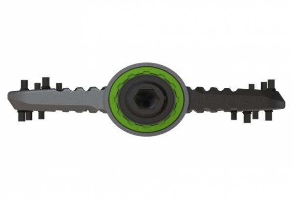 Durabilidad, peso y tamaño líderes en su clase. Diseñado a partir de goma sigilosa hacia abajo. El pedal de aluminio OneUp cuenta con una enorme plataforma de 115 x 105 mm, pero con solo 12 mm de grosor y bordes de ataque de solo 8 mm, no se enganchará en los obstáculos. Cada pedal contiene 4 rodamientos de cartucho completo con doble sellado y sin bujes para una máxima durabilidad y sin juego del eje. El exclusivo anillo de bloqueo de la herramienta del casete hace que el mantenimiento de los rodamientos sea rápido y sencillo. El sistema patentado de retención del eje con extractor de cojinetes incorporado ofrece una capacidad de servicio y protección contra los elementos sin igual. Características : 40 pasadores extraíbles hexagonales personalizados de carga trasera para un agarre máximo 4 rodamientos de cartucho sellado por pedal Diseño biselado de borde de ataque ultrafino para desviar cualquier obstáculo Diseño completamente sellado y reparable con extractor de cojinetes incorporado Diseño de plataforma ancha para mayor estabilidad. La forma contorneada proporciona la máxima sensación de conexión. ESPECIFICACIONES No compatible con bielas de carbono SRAM Peso: 355g Tamaño de la plataforma: 115×105 mm # de pines: 10 por lado Material del eje: acero cromado. Altura: 8,3-12 mm Distancia pin a eje: 112 mm Color: negro, verde, gris Material del cuerpo: Aluminio 6061-T6